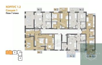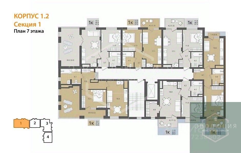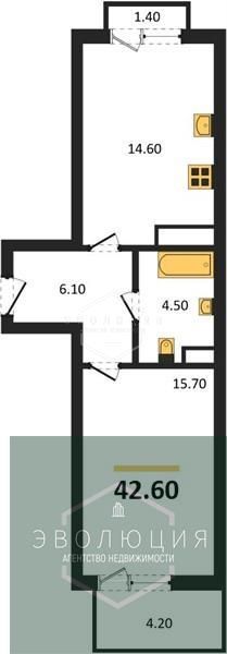 Квартира: 1 к 42,60 кв.м., 7 этаж в комплексе МОре, 1 очередь, корп.1.2, сдача: 4кв. , этажей: 7, адрес Пионерский г., Рабочая ул., , Застройщик: СК Меркурий.