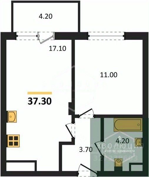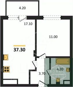 Квартира: 1 к 37,30 кв.м., 7 этаж в комплексе МОре, 1 очередь, корп.1.2, сдача: 4кв. , этажей: 7, адрес Пионерский г., Рабочая ул., , Застройщик: СК Меркурий.