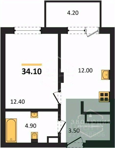 Квартира: 1 к 34,10 кв.м., 7 этаж в комплексе МОре, 1 очередь, корп.1.2, сдача: 4кв. , этажей: 7, адрес Пионерский г., Рабочая ул., , Застройщик: СК Меркурий.