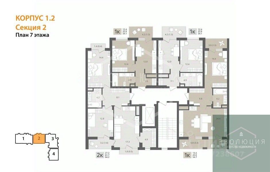 Квартира: 1 к 34,10 кв.м., 7 этаж в комплексе МОре, 1 очередь, корп.1.2, сдача: 4кв. , этажей: 7, адрес Пионерский г., Рабочая ул., , Застройщик: СК Меркурий.