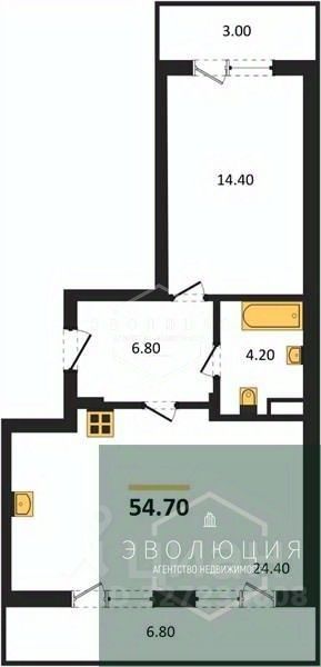 Квартира: 1 к 54,70 кв.м., 7 этаж в комплексе МОре, 1 очередь, корп.1.2, сдача: 4кв. , этажей: 7, адрес Пионерский г., Рабочая ул., , Застройщик: СК Меркурий.