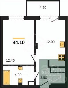 Квартира: 1 к 34,10 кв.м., 6 этаж в комплексе МОре, 1 очередь, корп.1.2, сдача: 4кв. , этажей: 7, адрес Пионерский г., Рабочая ул., , Застройщик: СК Меркурий.