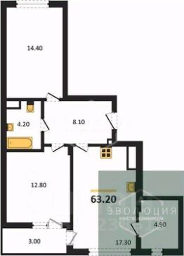 Квартира: 2 к 63,20 кв.м., 6 этаж в комплексе МОре, 1 очередь, корп.1.2, сдача: 4кв. , этажей: 7, адрес Пионерский г., Рабочая ул., , Застройщик: СК Меркурий.