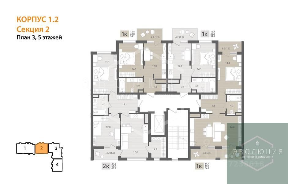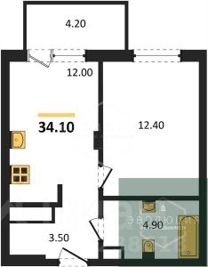 Квартира: 1 к 34,10 кв.м., 5 этаж в комплексе МОре, 1 очередь, корп.1.2, сдача: 4кв. , этажей: 7, адрес Пионерский г., Рабочая ул., , Застройщик: СК Меркурий.
