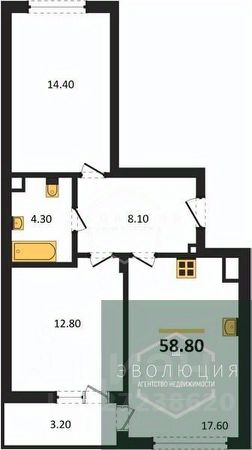 58,8 м²
