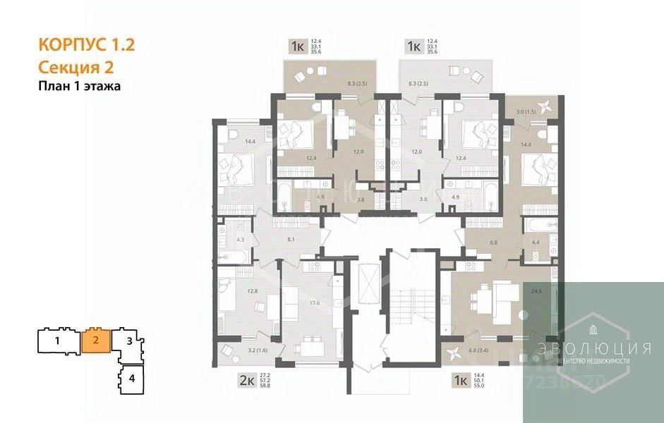 Квартира: 2 к 58,80 кв.м., 1 этаж в комплексе МОре, 1 очередь, корп.1.2, сдача: 4кв. , этажей: 7, адрес Пионерский г., Рабочая ул., , Застройщик: СК Меркурий.