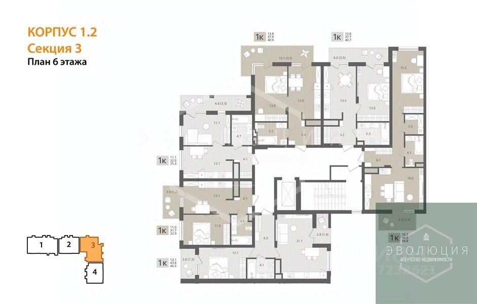 Квартира: 1 к 50,80 кв.м., 6 этаж в комплексе МОре, 1 очередь, корп.1.2, сдача: 4кв. , этажей: 7, адрес Пионерский г., Рабочая ул., , Застройщик: СК Меркурий.