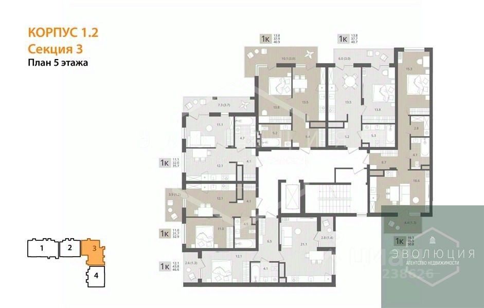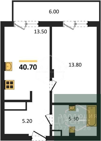 Квартира: 1 к 40,70 кв.м., 5 этаж в комплексе МОре, 1 очередь, корп.1.2, сдача: 4кв. , этажей: 7, адрес Пионерский г., Рабочая ул., , Застройщик: СК Меркурий.