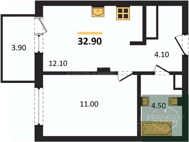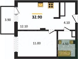 32,9 м²