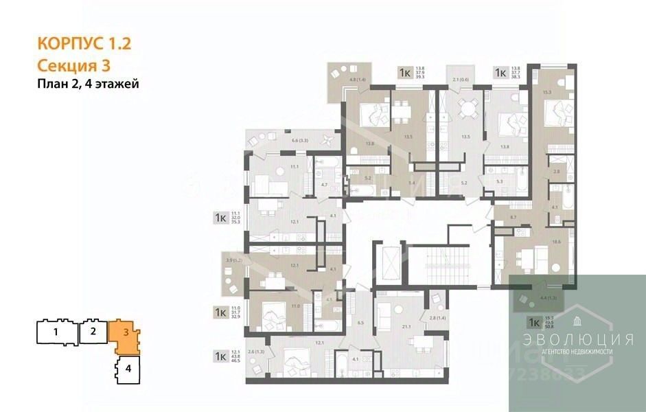 Квартира: 1 к 38,30 кв.м., 4 этаж в комплексе МОре, 1 очередь, корп.1.2, сдача: 4кв. , этажей: 7, адрес Пионерский г., Рабочая ул., , Застройщик: СК Меркурий.