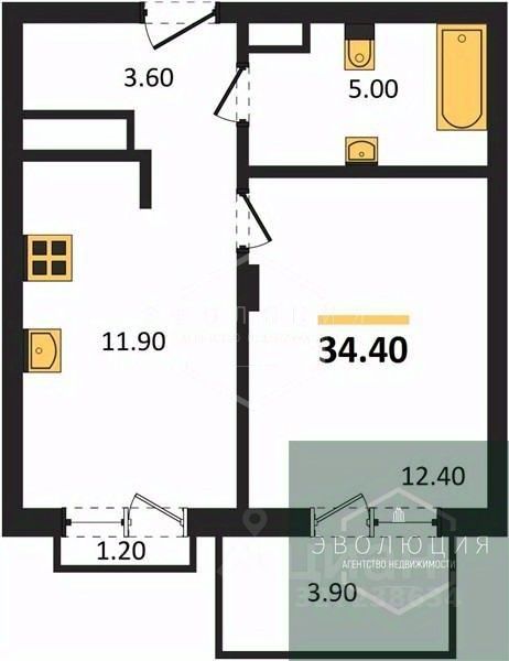34,4 м²