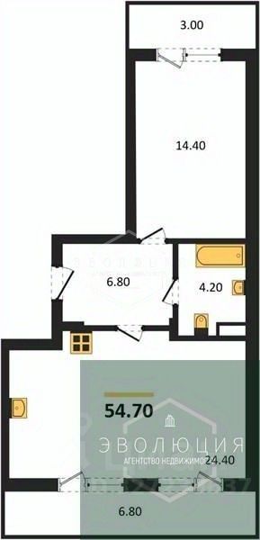 Квартира: 1 к 54,70 кв.м., 3 этаж в комплексе МОре, 1 очередь, корп.1.2, сдача: 4кв. , этажей: 7, адрес Пионерский г., Рабочая ул., , Застройщик: СК Меркурий.