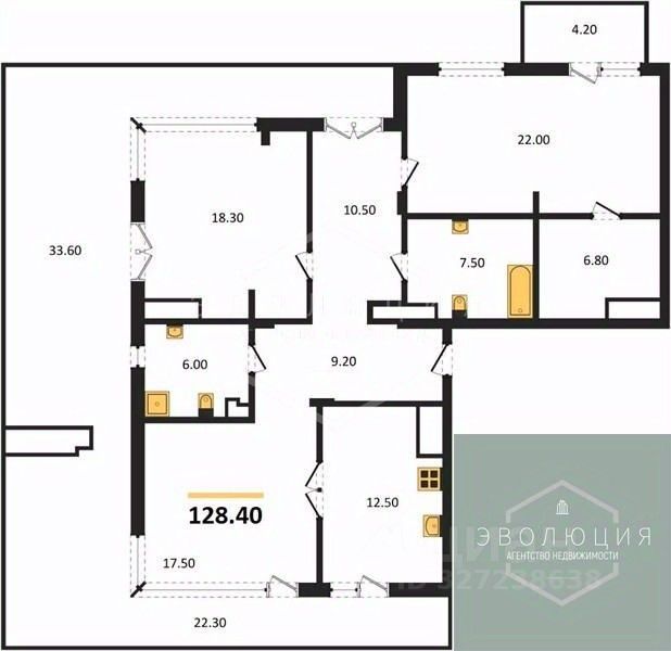 128,4 м²