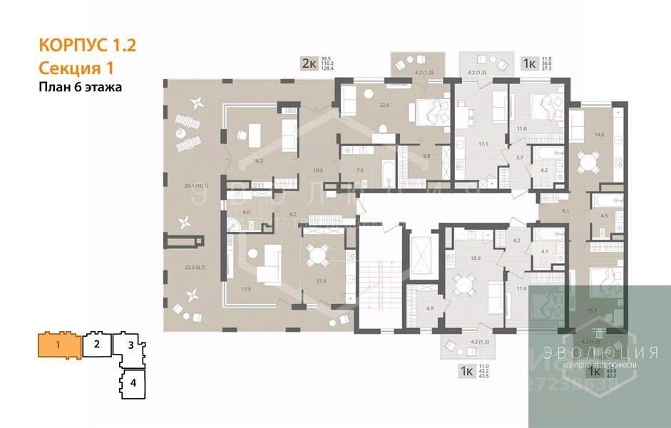 Квартира: 2 к 128,40 кв.м., 6 этаж в комплексе МОре, 1 очередь, корп.1.2, сдача: 4кв. , этажей: 7, адрес Пионерский г., Рабочая ул., , Застройщик: СК Меркурий.