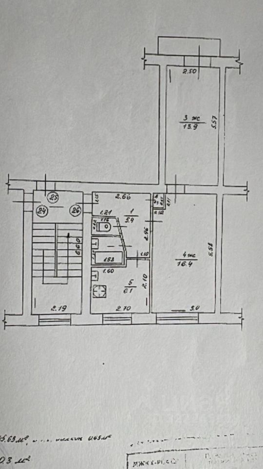 Общая площадь квартиры составляет 45.63 квадратных метров. Пространства достаточно для комфортного проживания семьи.