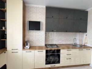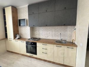 Графитовые верхние шкафы, кремовые нижние, столешница под дерево, плитка под белый кирпич — всё продумано до мелочей. Встроенная плита + духовка, мойка, розетки — можно сразу начинать готовить вкусные ужины.