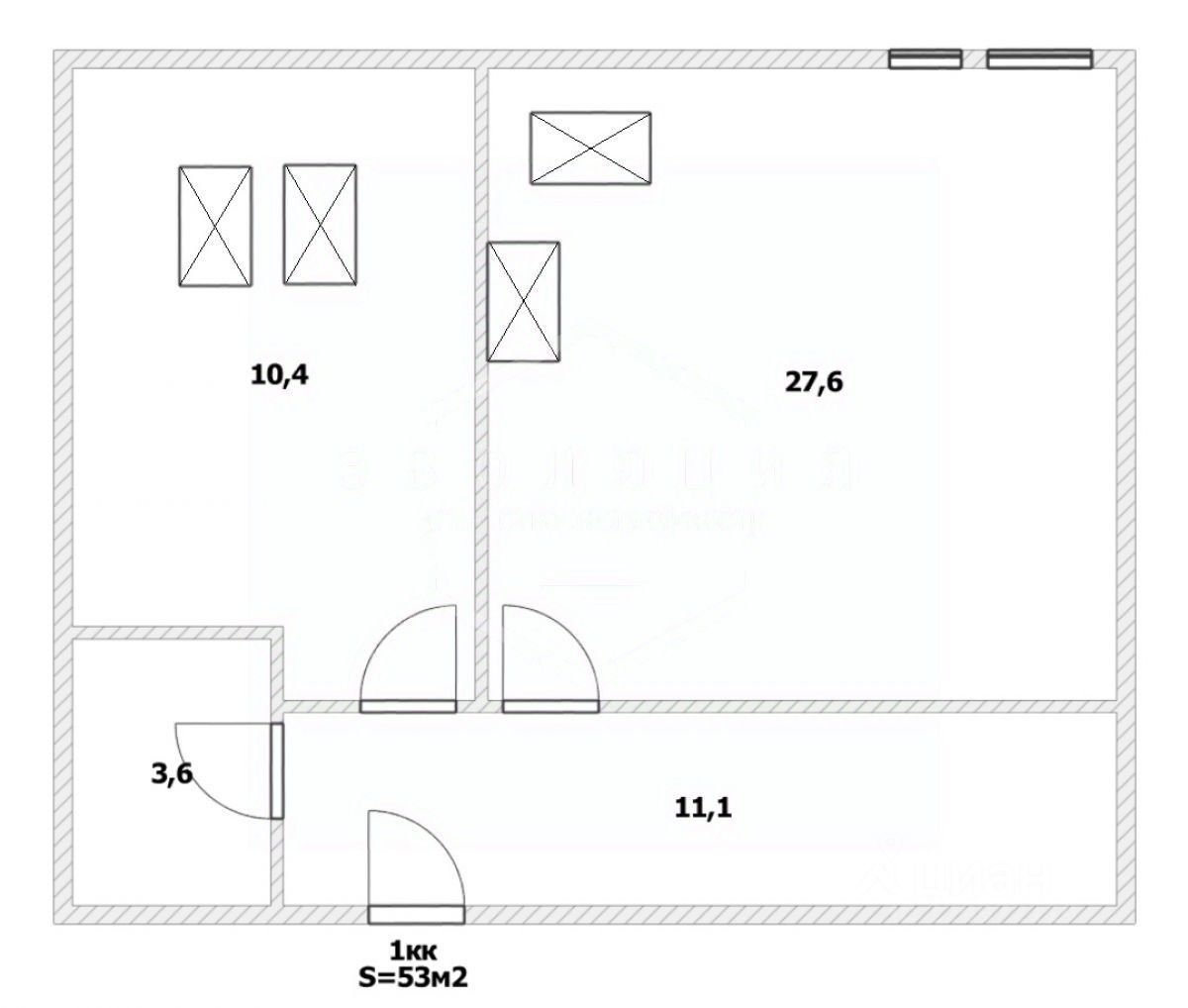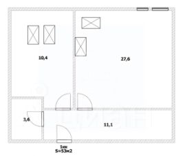 Общая площадь квартиры 53 кв.м.