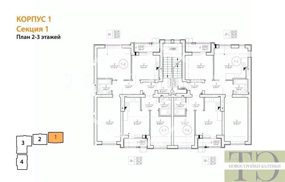 Квартира: 2 к 58,38 кв.м., 2 этаж в комплексе Заостровье, 1 очередь, корп.1, сдача: 4кв. , этажей: 4, адрес Заостровье п., им. старшего лейтенанта Ильи Пуртова ул., д. 1, Застройщик: Модуль-Стройград.