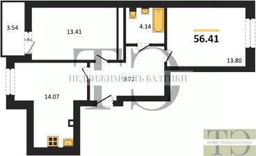 Квартира: 2 к 56,41 кв.м., 6 этаж в комплексе Подсолнухи, 4 очередь, корп.6, сдача: 4кв. , этажей: 9, адрес Калининград г., Понартская ул., д. 12, Застройщик: Модуль-Стройград.