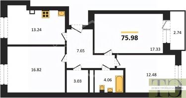 Квартира: 3 к 75,98 кв.м., 1 этаж в комплексе Подсолнухи, 4 очередь, корп.6, сдача: 4кв. , этажей: 9, адрес Калининград г., Понартская ул., д. 12, Застройщик: Модуль-Стройград.
