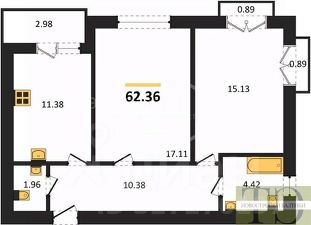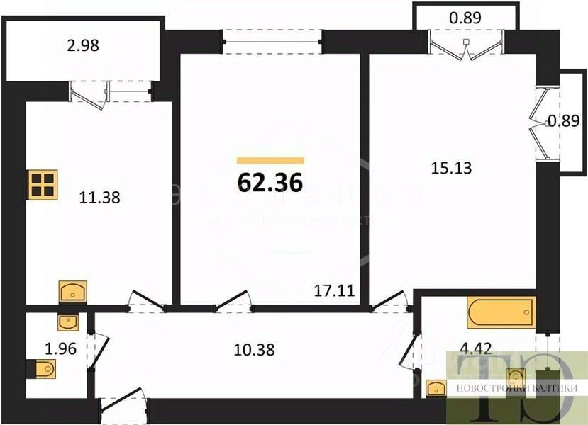 Квартира: 2 к 62,36 кв.м., 8 этаж в комплексе Суздальский 3, 3 очередь, корп.3.2, сдача: 4кв. , этажей: 9, адрес Калининград г., Суздальская ул., д. 17, Застройщик: Модуль-Стройград.