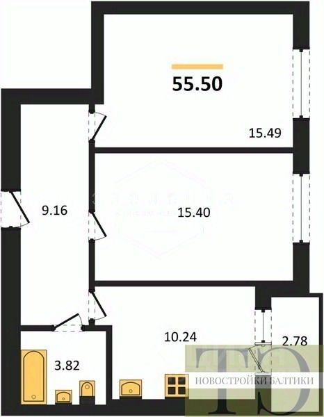 Квартира: 2 к 55,50 кв.м., 3 этаж в комплексе Суздальский 3, 3 очередь, корп.3.2, сдача: 4кв. , этажей: 9, адрес Калининград г., Суздальская ул., д. 17, Застройщик: Модуль-Стройград.