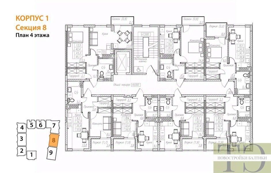 Квартира: 1 к 32,40 кв.м., 4 этаж в комплексе Симфония моря, 1 очередь, корп.1, сдача: 1кв. , этажей: 5, адрес Пионерский г., Прибрежная ул., д. 23 корп 1, Застройщик: Модуль-Стройград.