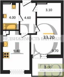 Квартира: 1 к 33,20 кв.м., 2 этаж в комплексе Симфония моря, 1 очередь, корп.1, сдача: 1кв. , этажей: 5, адрес Пионерский г., Прибрежная ул., д. 23 корп 1, Застройщик: Модуль-Стройград.