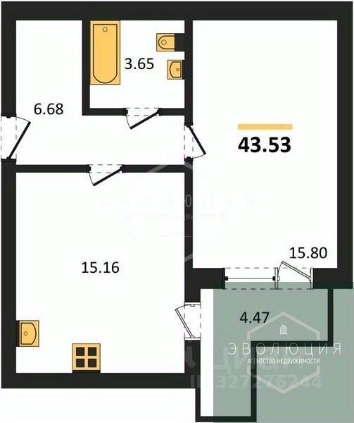 43,53 м²
