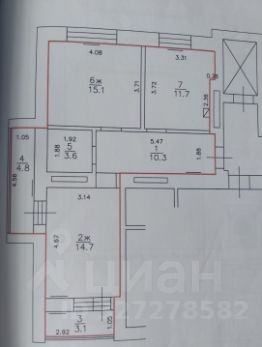 - Просторные комнаты правильной формы 15,1м² и 14,7м²