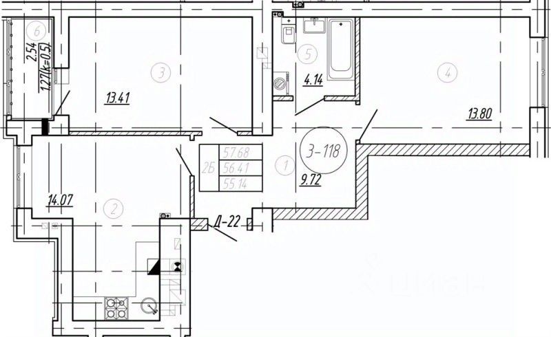 Квартира: 2 к 56,41 кв.м., 6 этаж в комплексе Подсолнухи, 4 очередь, корп.6, сдача: 4кв. , этажей: 9, адрес Калининград г., Понартская ул., д. 12, Застройщик: Модуль-Стройград. Номер в базе: J26193L21866