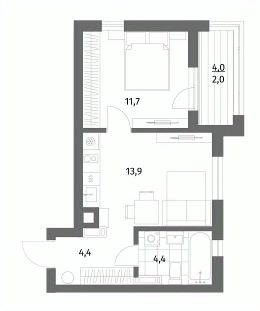 Продается квартира площадью 36.4 м² на 3 этаже 1 секции в Речной парк от компании ГК "ТРЕСТ". Площадь кухни 13.9 м².
