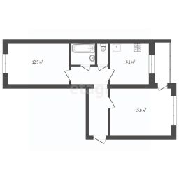 - комната 15.0 кв.м. занята сособственником