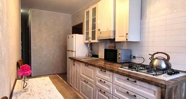 Общая площадь 43,8 кв.м. Изолированные комнаты, кухня в середине, совмещённый санузел, просторная застекленная лоджия с видом на сад во дворе (яблони, вишни, малина, виноград, цветущие кустарники). Автономное отопление, счетчики на все. Бонусом - большой сухой подвал около 20 кв.м!