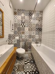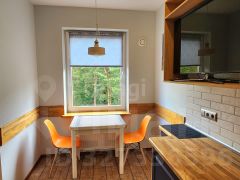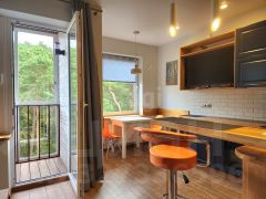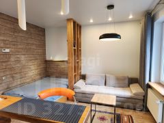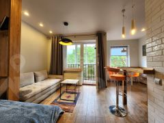 Студия полностью готова к заселению: современный ремонт в светлых тонах, мебель и техника остаются новому владельцу.