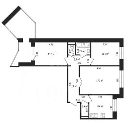• Комнаты: 17,2 кв.м., 10,2 кв.м., 11,5 кв.м (просторные изолированные комнаты).