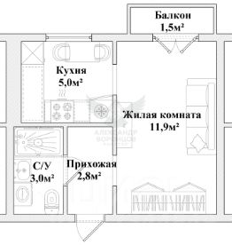 • Балкон - 1,5 м² (выход из комнаты).