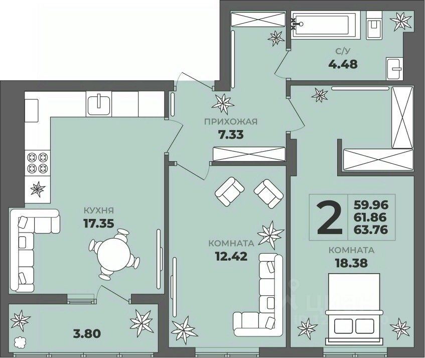 Общая площадь61,86 м²