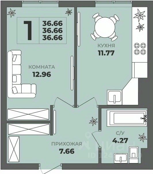 Общая площадь36,66 м²