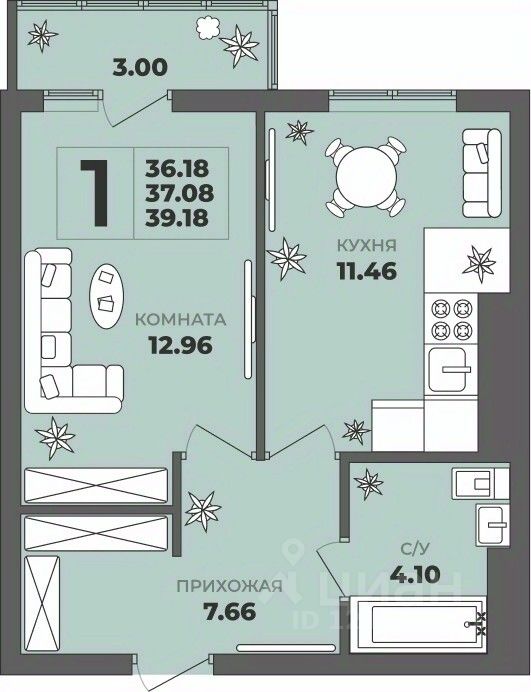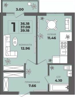 Общая площадь37,08 м²