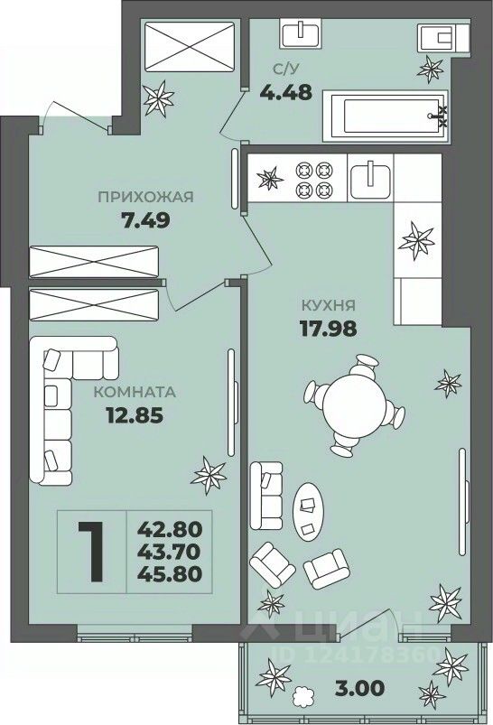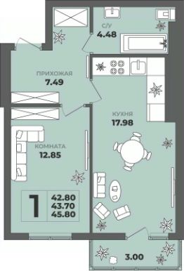 Общая площадь43,7 м²