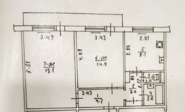 Две комнаты площадью 19,1 кв. м и 14 кв.м