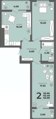 Продаётся 2-комнатная квартира в строящемся доме (Дом 1), срок сдачи: II-кв. 2027, общей площадью 63.48 кв.м., на 5 этаже. ЖК "ГРИНВУД". - Жилой комплекс из двух 8-ми этажных дoмoв - Комфортные и продуманные планировки - Kласc энepгоэффeктивнocти B (выcoкий) - Качественные серый ключ - Автономное газовое отопление. - Лоджии и балконы остеклены (алюминиевые ограждающие конструкции) - Бесшумные грузопассажирские лифты - Качественные и безопасные входные двери - Современное благоустройство двора с детскими и спортивными площадками, местами отдыха взрослых и детей - Ипотека в ВТБ, Банк Санкт-Петербург, Альфа-Банк, Банк Дом РФ ЖК "Гринвуд" находится в экологически чистой части бывшего Балтийского района. Сейчас к этой территории повышенный интерес: здесь нет крупных производств, много зелёных уголков, развитая социальная инфраструктура. Улучшается и транспортная доступность района. В шаговой доступности от ЖК расположена обширная зелёная зоной у озера Пеньковое. Тихое уютное место подарит отдых от городской суеты. При этом рядом находится вся необходимая инфраструктура: детские сады, школы, супермаркеты, рынок, фитнес-центры, салоны красоты, библиотека, торговые центры и остановки общественного транспорта. ЖК "Гринвуд" выполнен в современном архитектурном стиле. На комфортной прилегающей территории предусмотрены места для отдыха взрослых, детские и спортивные площадки, вместительная парковка. В доме также располагаются нежилые помещения различного назначения, так что можно рассчитывать на салоны красоты, аптеки, медицинские центры и магазинчики прямо в ЖК. РЯДОМ: - Озеро "Пеньковое"- Остановка общественного транспорта в 5 минуте ходьбы - Южный рынок - Детский сад 136 - Детская поликлиника 4 - Школа 6 и 56 (2 корпус) - Спортивная школа - Супермаркеты: "Пятерочка", "Вестер" и пр. - Аптеки и медицинские учреждения - АЗС Лукойл
