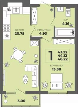 Общая площадь44,12 м²