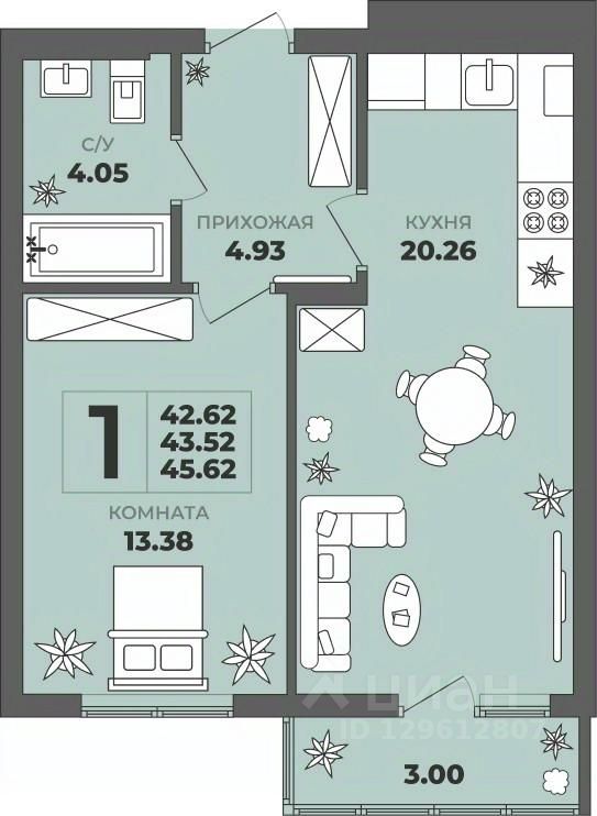 Общая площадь43,52 м²