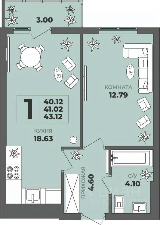 Общая площадь41,02 м²