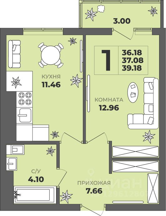 Продаётся 1-комнатная квартира в строящемся доме (Дом 2), срок сдачи: II-кв. 2027, общей площадью 37.08 кв.м., на 2 этаже. ЖК "ГРИНВУД".
