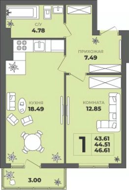 Общая площадь44,51 м²