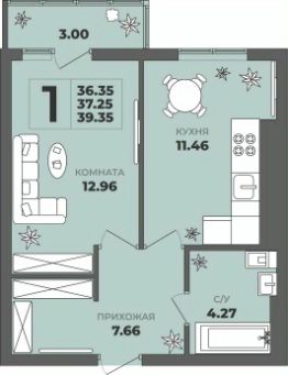 Общая площадь37,25 м²