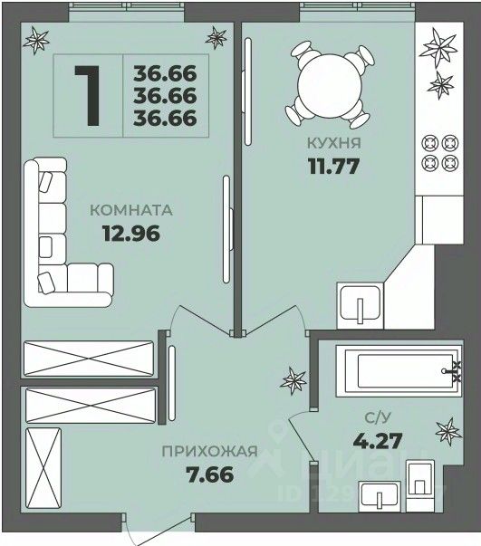 Общая площадь36,66 м²